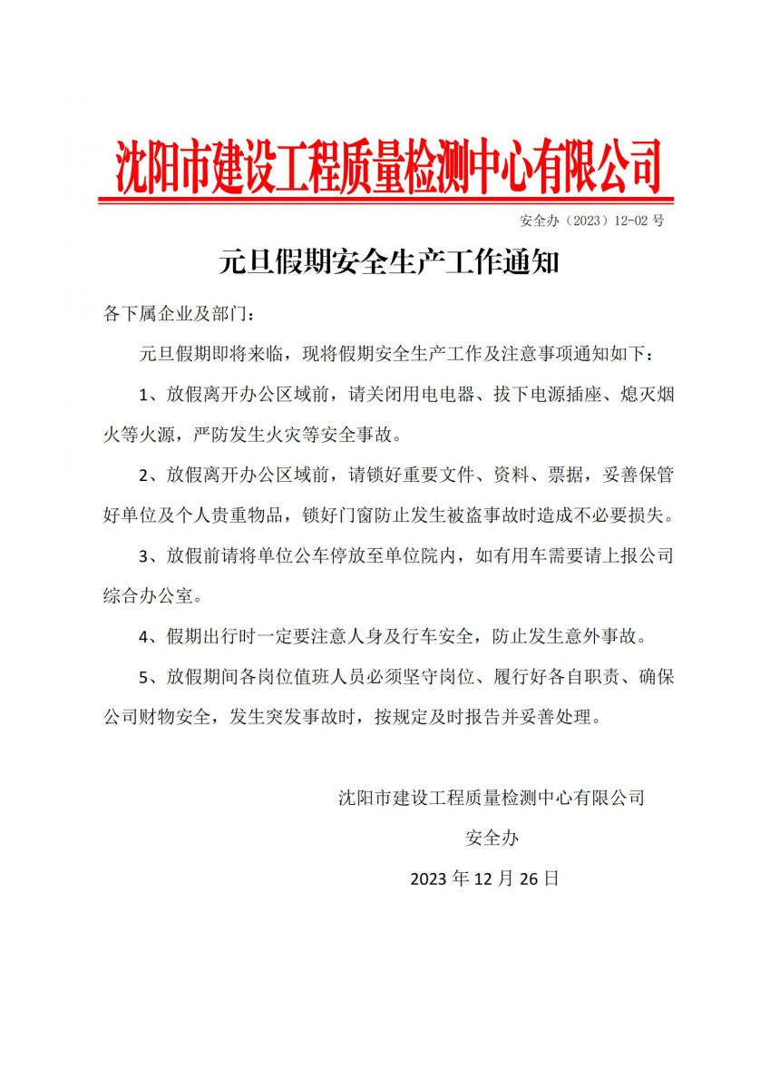 2024年元旦假期安全生產(chǎn)工作通知